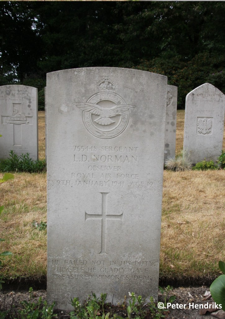 RAF Sergeant, Lawrence Dudley NORMAN, Beobachter, 19 Jahre alt, Nr. 755448 (Grab IV-B-10), aus Banstead in Surrey.