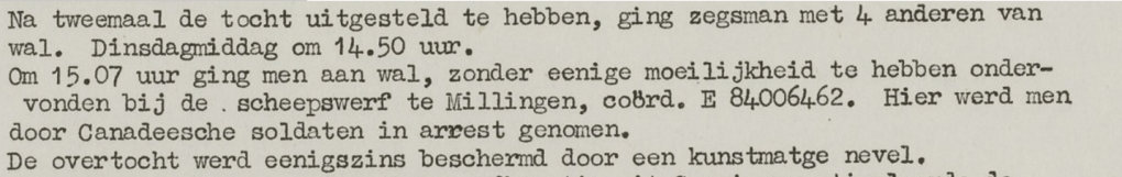 Am 17. Februar wurde um 09:00 Uhr von Kompanie A ein Schiff gesichtet, das in Richtung Niederrhein fuhr. Es wurde beschlossen, mit leichten Waffen auf das Schiff zu schießen. Bald brach an Bord ein Feuer aus. Captain Frens, ein Forward Observation Officer (Artilleriebeobachtungsoffizier, ein FOO), kam nach Millingen, um die deutschen Bewegungen am anderen Rheinufer zu beobachten.