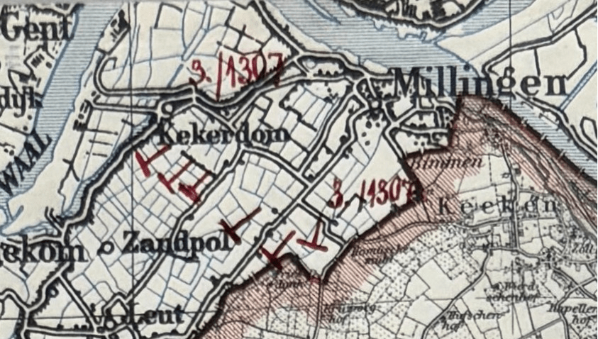 In early October, various German units were in Millingen: the 3rd Battalion of the 1052nd Regiment, 84th Division with about 400 men; the 304th Regiment, 84th Division with about 564 men and 8 officers; and the 3rd Battalion of the 1307th Artillery Regiment with about 150 men. The 3rd Battalion of the 1307th Artillery Regiment had placed several new guns on Zeelandsestraat.