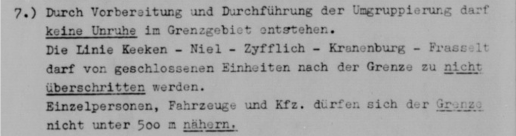 Around 1938/1939, German troops increasingly moved toward the border villages. One of the units stationed at the border near Millingen was the 4th Company of MG Battalion 9, attached to the 484th Infantry Regiment of the 254th Infantry Division. This unit arrived in Keeken in early February 1940. They were quartered in houses there, because a large tent camp would arouse suspicion among the Dutch. They likely carried out reconnaissance in Millingen to assess the situation. In their free time, they often crossed the border into Millingen to chat with the local population. On 17 February 1940, the 4/9 of the 484th Infantry Regiment received orders that no one was allowed to cross the border anymore. If they approached the border, they had to stay 500 metres away, and military vehicles had to drive either with dimmed headlights or without lights at all.