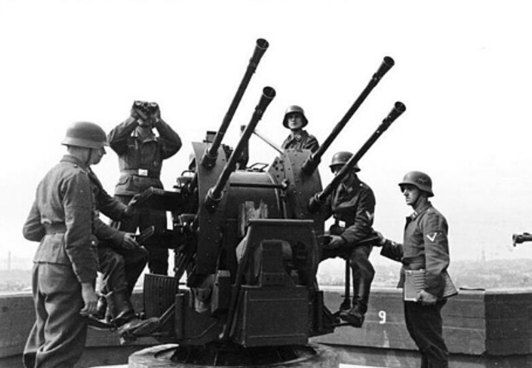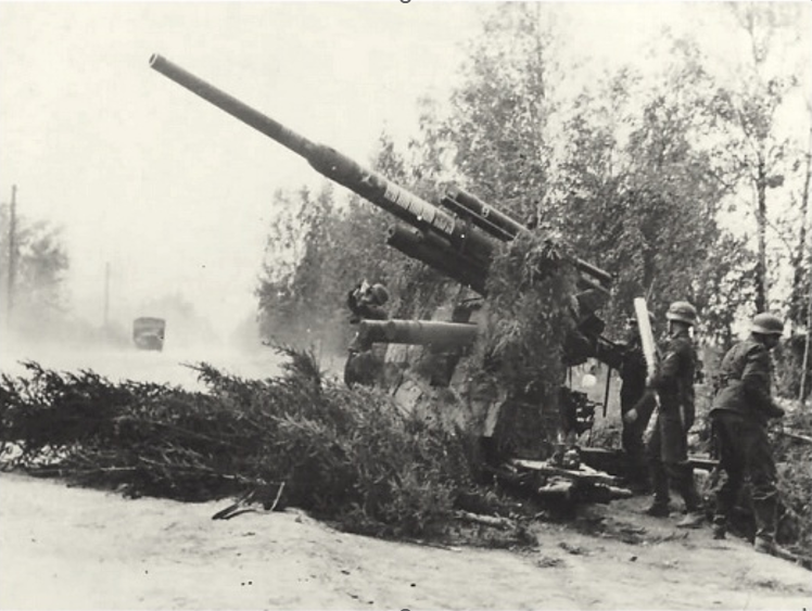 At approximately 3:20 p.m., the anti-aircraft batteries of Flakabteilung 572 (b-mot) open fire with their heavy 88mm guns. Within seconds, the sky fills with tracer shells. According to the report of the battery commander, 36 shells are fired to an altitude of about 1,300 meters. The first hits are soon reported: the left outer engine is struck, and the fuselage and wing sustain multiple impacts.